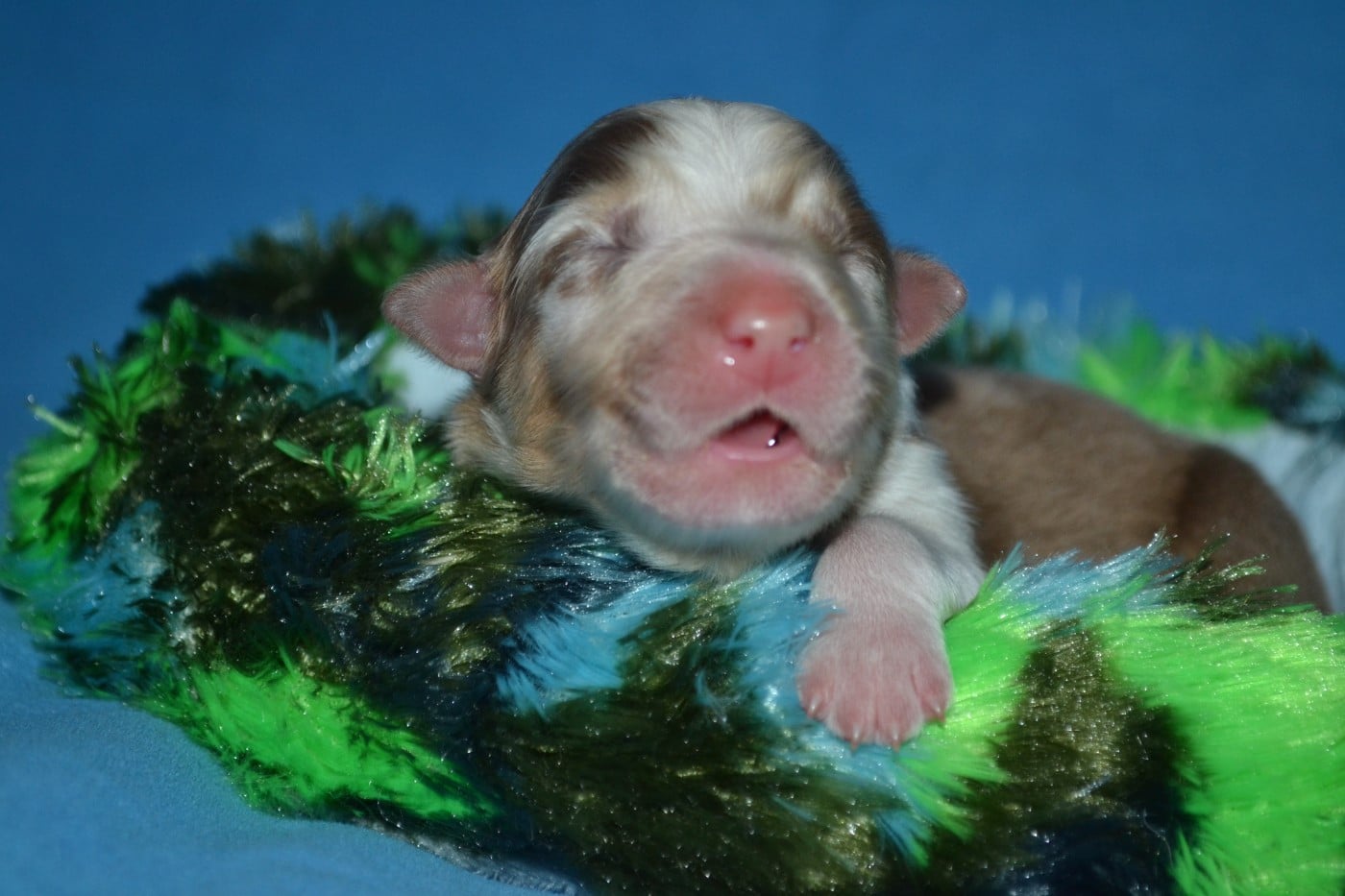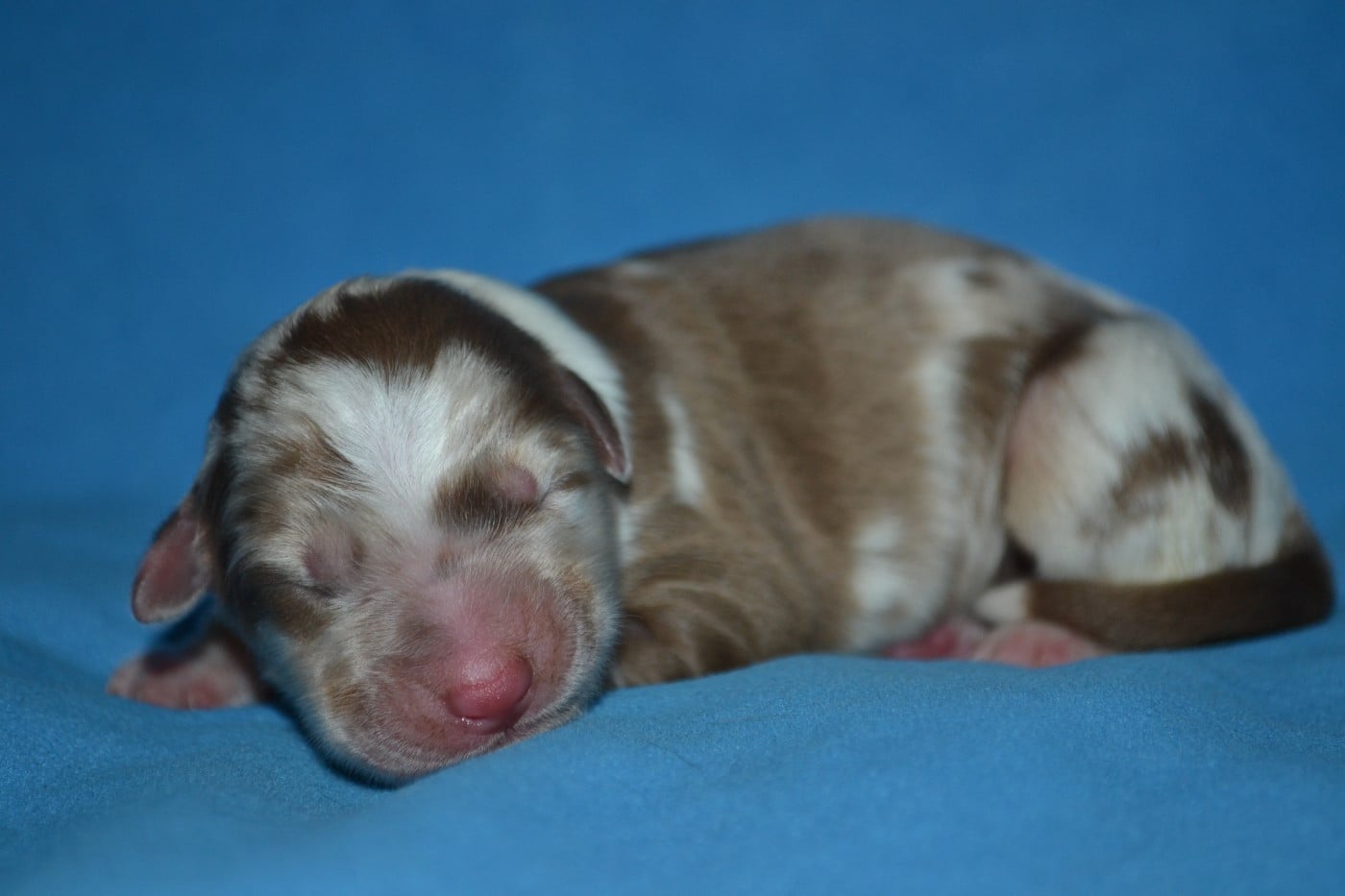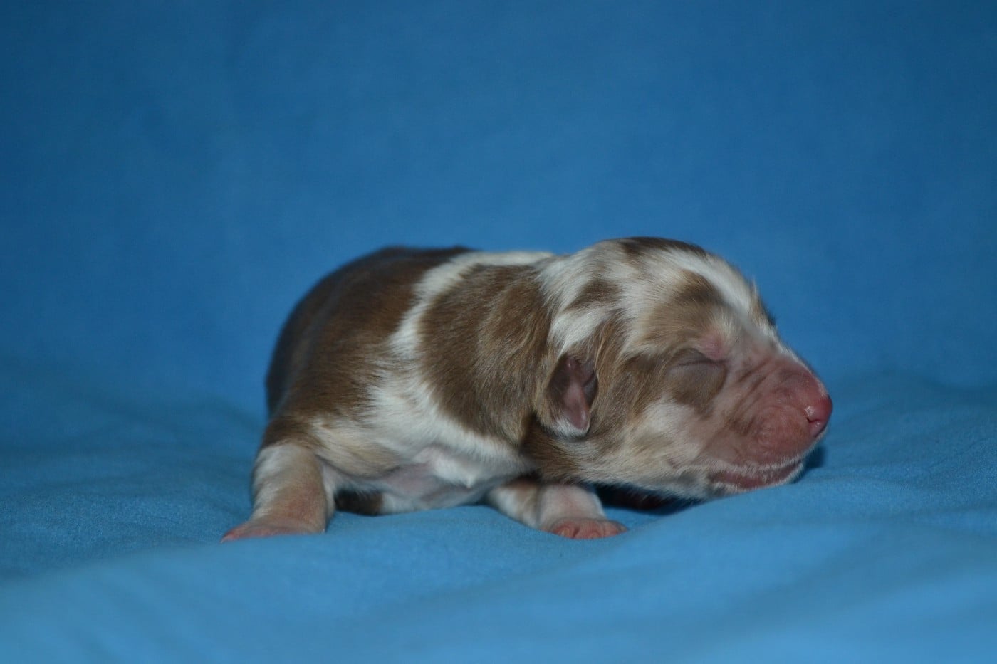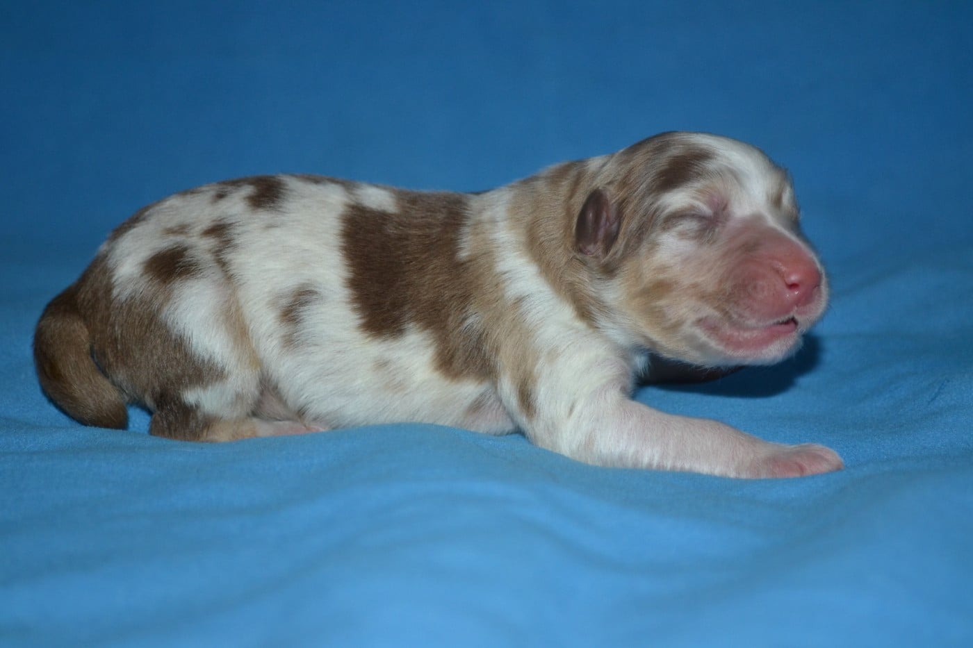Abyss de la vie sans soucis Femelle Berger Australien Rouge merle queue longue inscrit au LOF née à Baslieux le 7/12/2025( TOUNDRA X BOSS )