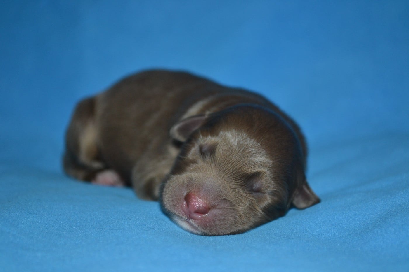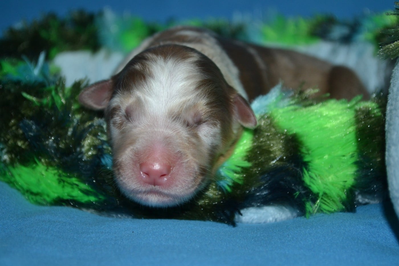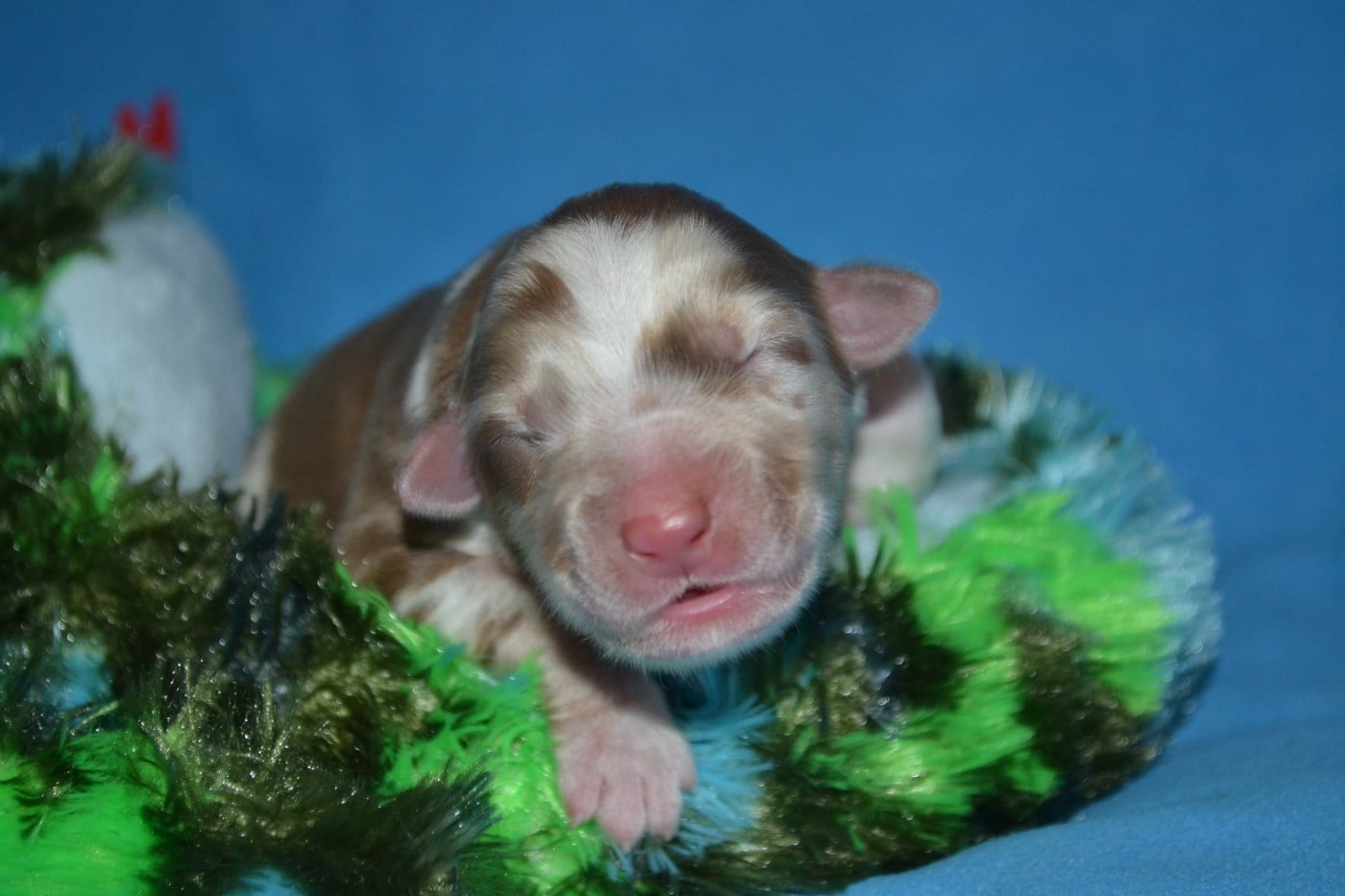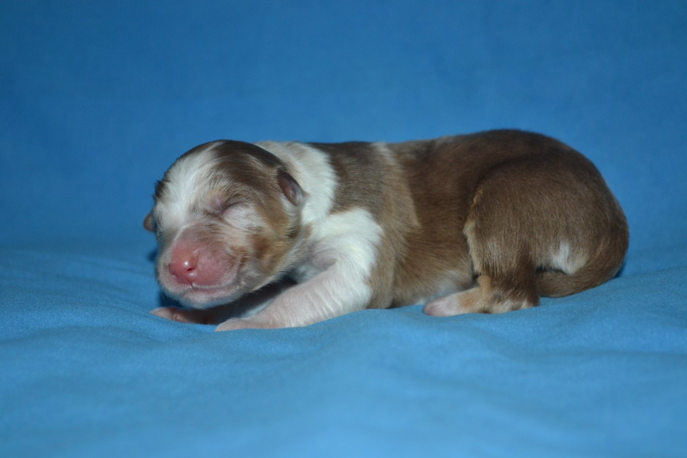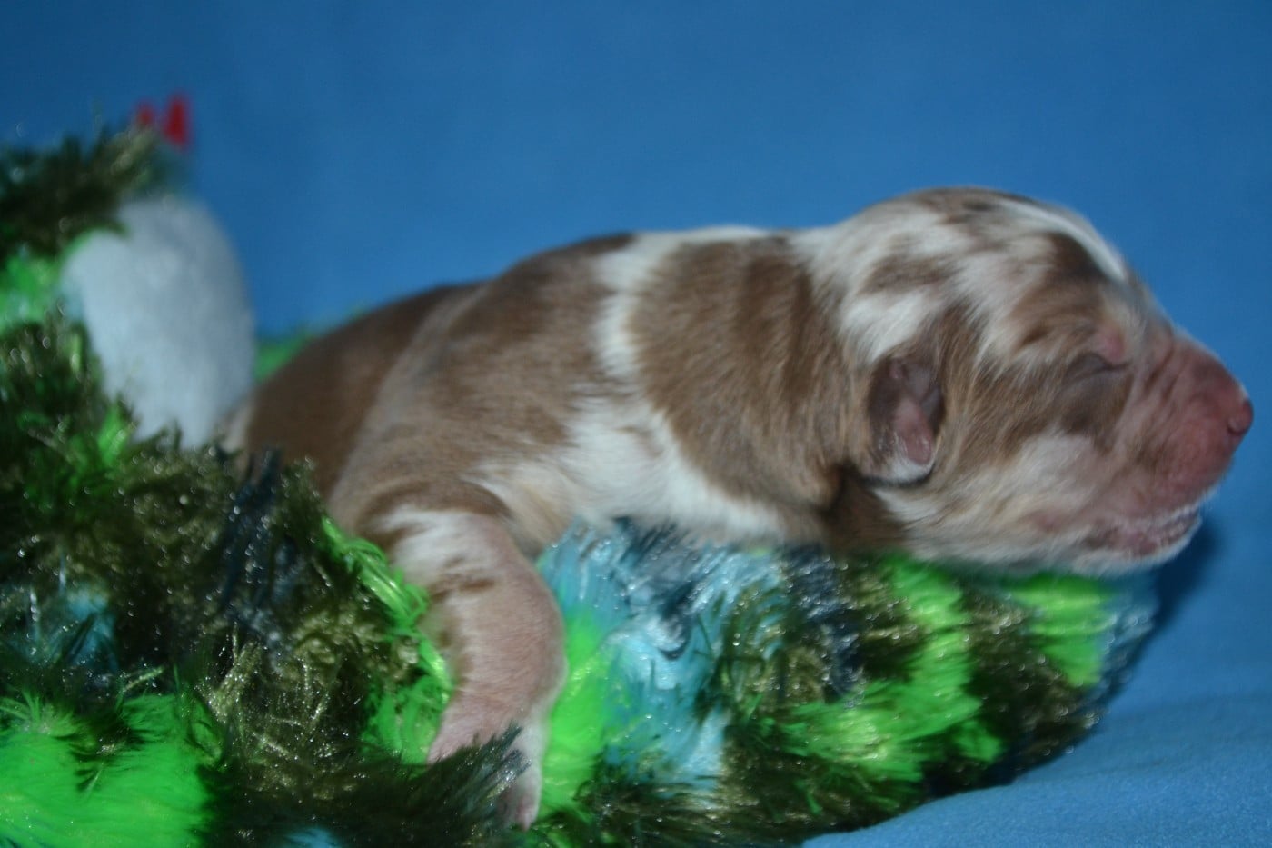 Abyss de la vie sans soucis Femelle Berger Australien Rouge merle queue longue inscrit au LOF née à Baslieux le 7/12/2025( TOUNDRA X BOSS )