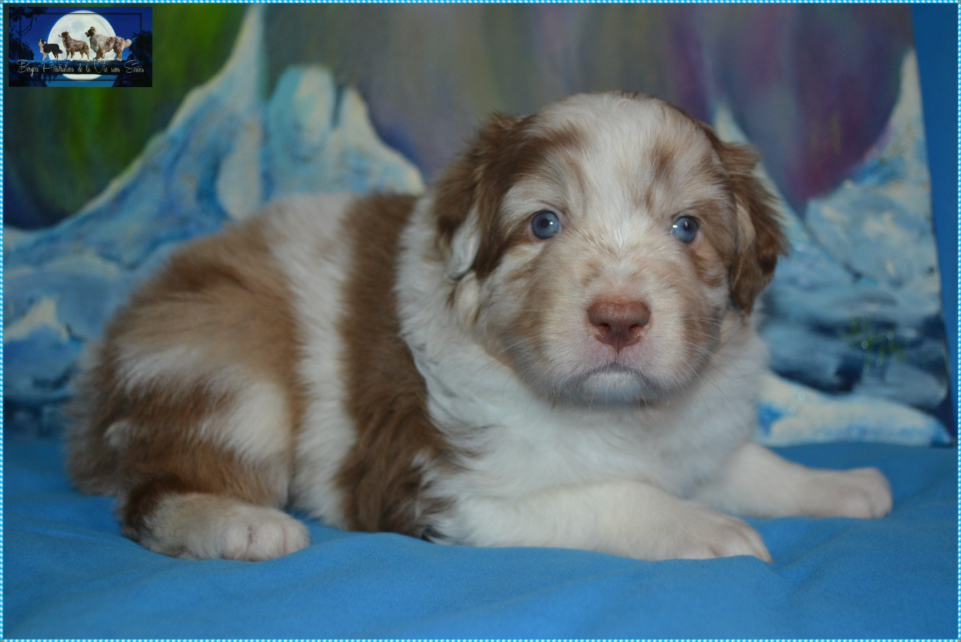 de son union avec Ugo Boss of Little Blue Stars. 1 mâle rouge merle bicolore et 3 femelles (2 rouges merles,1 rouge tricolore )